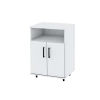 Mueble organizador para microondas. Posee 1 Nicho, 2 Puertas con Estante Divisor Regulable, y Patas Regulables. Manijas plásticas y bisagras metálicas. Fabricado en melamina de 15mm. Garantía de fábrica: 6 meses.